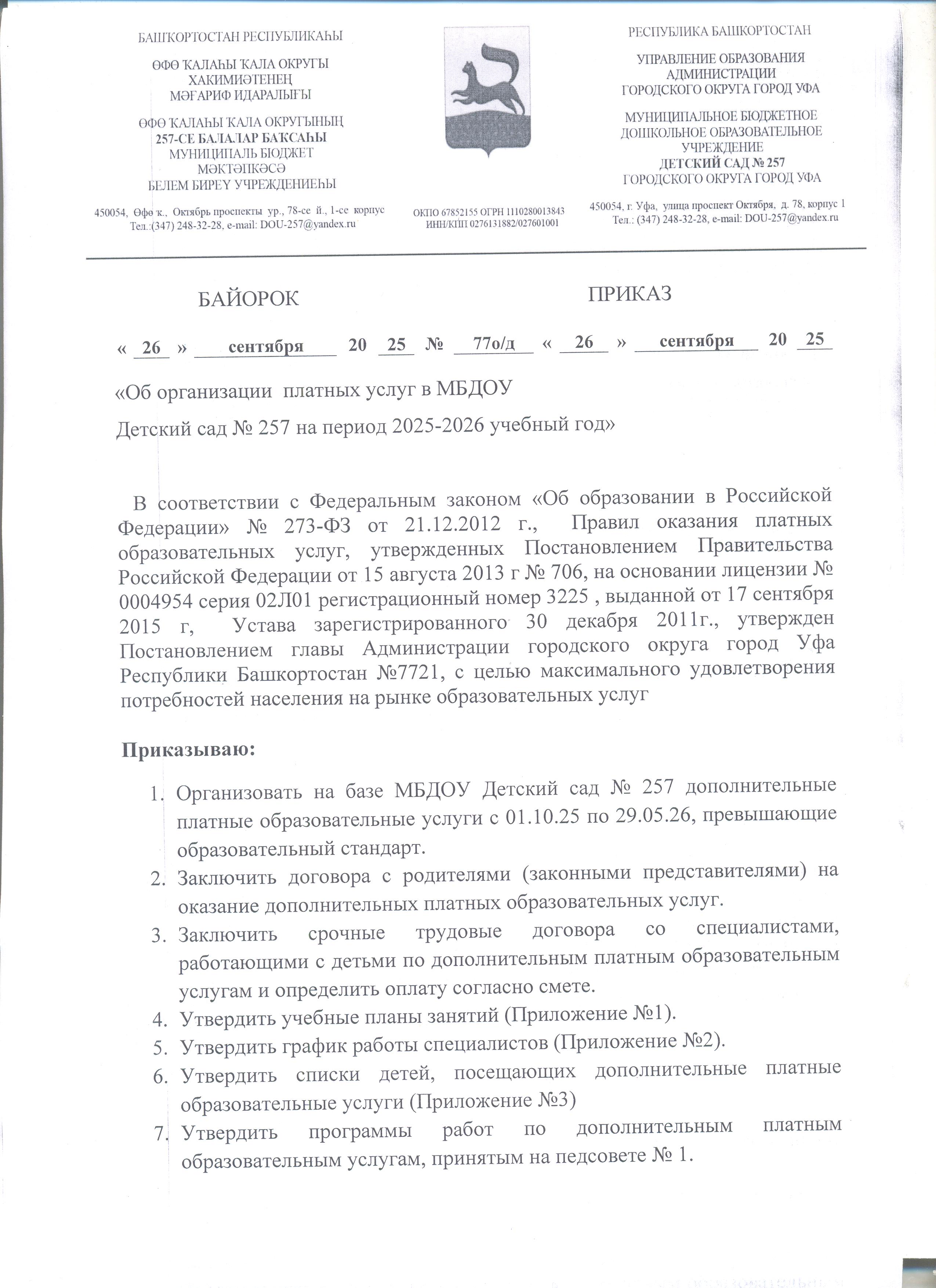 Расписание дополнительных платных образовательных услуг на 2025-2025 г.